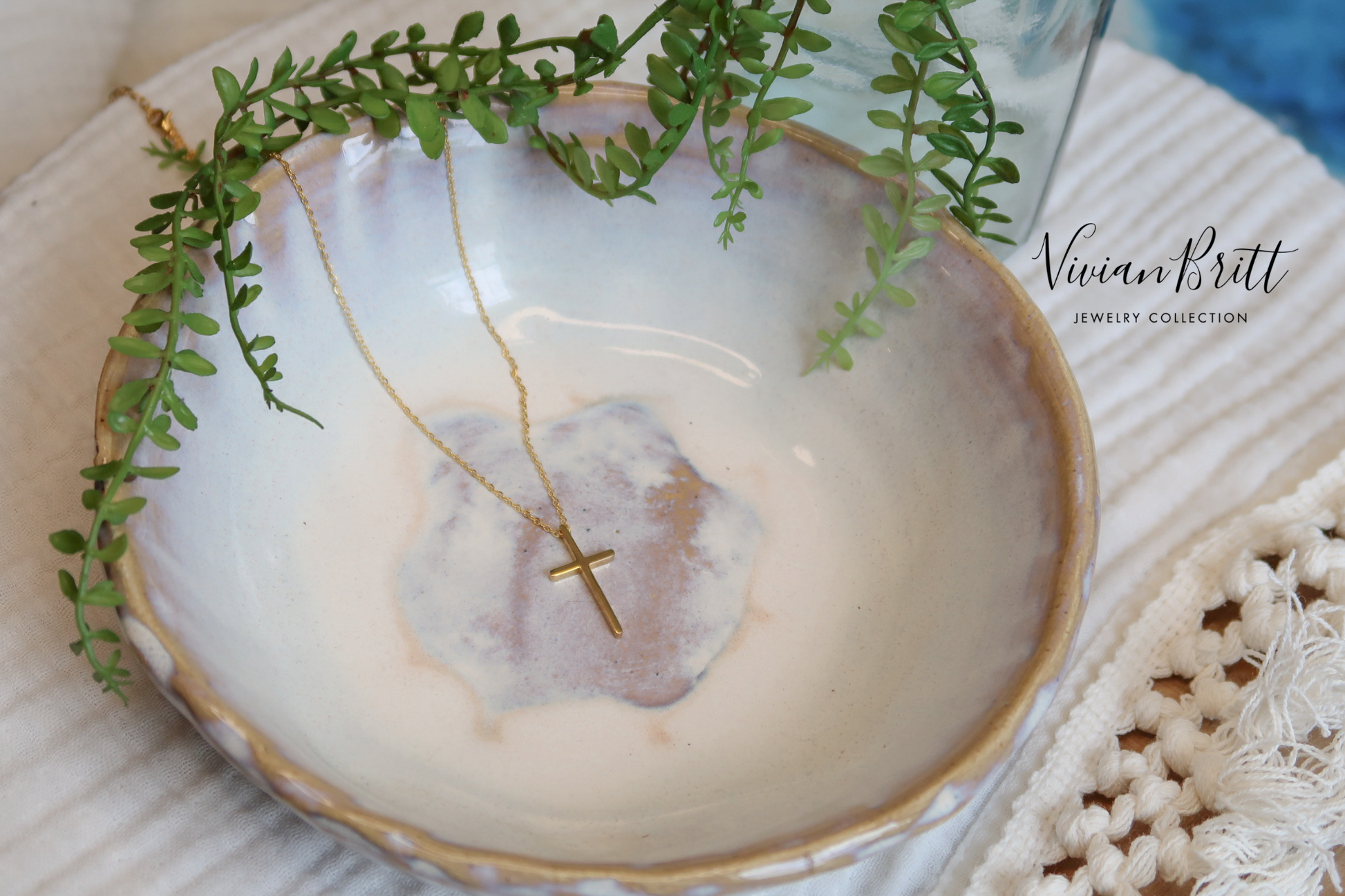 The Ann Gold Cross Necklace is perfect for day-to-day wear, and is also suitable for layering with our other Vivian Britt chains. The minimalist design makes it a versatile addition to any outfit, allowing you to carry a piece of your faith with you wherever you go. It has a delicate, smooth, and polished surface that grabs attention with its bright and natural hue.