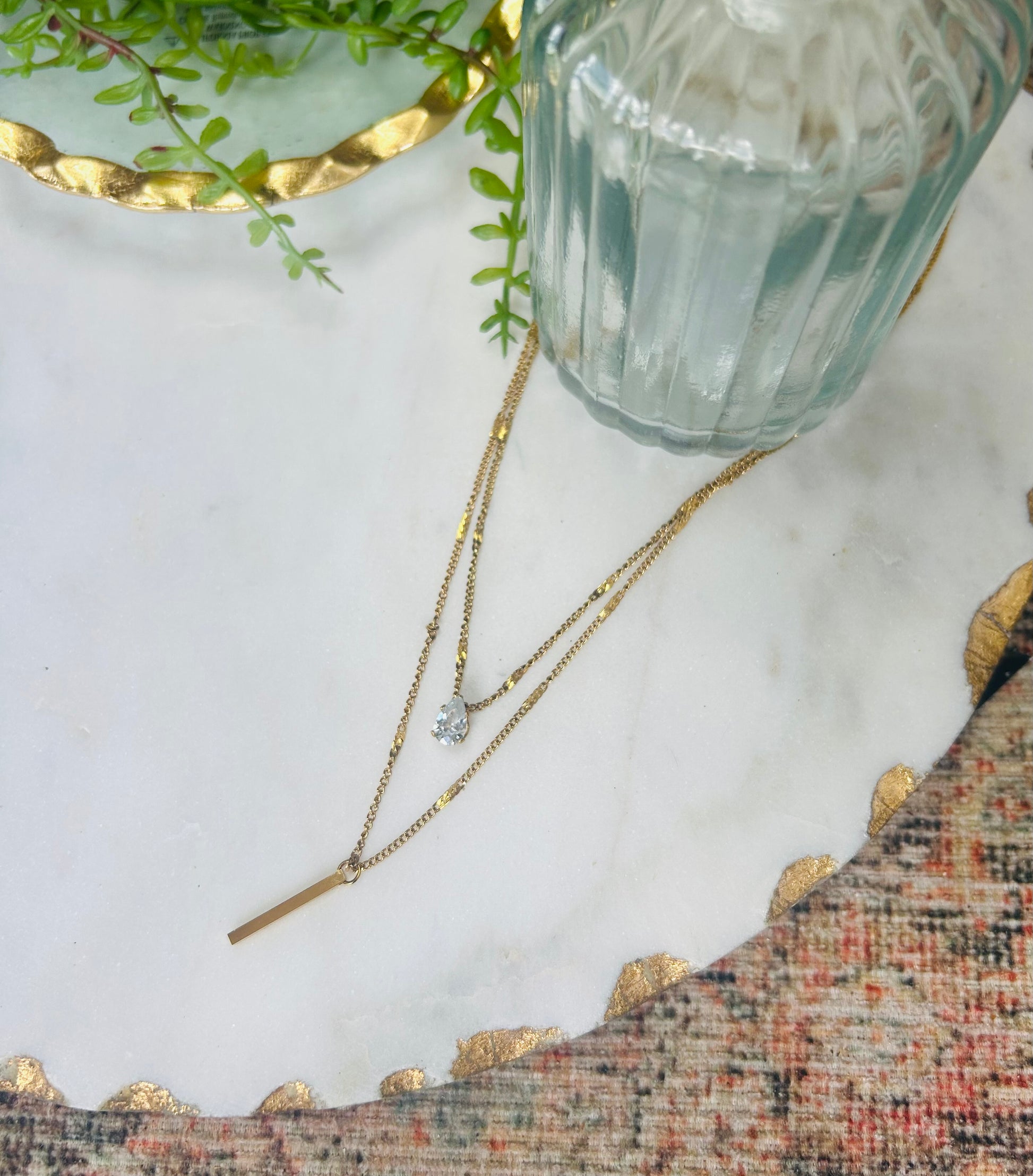Our Elisha Necklace, with two different chain textures and the prettiest teardrop CZ pendant, is an effortless addition to your everyday outfits. This is such a classy necklace that can be worn dressed up for any special occasion... even just a fun girls night out!!