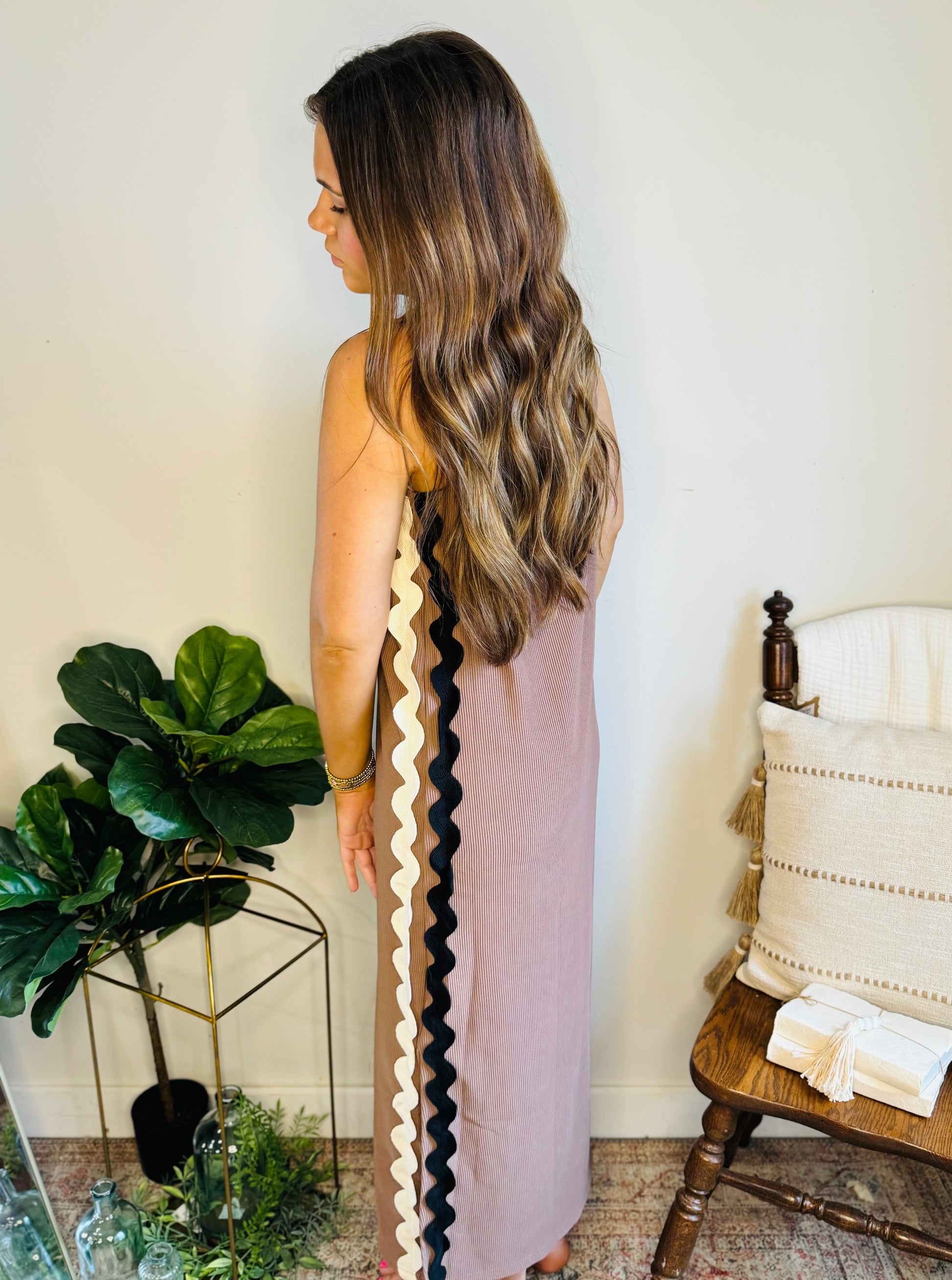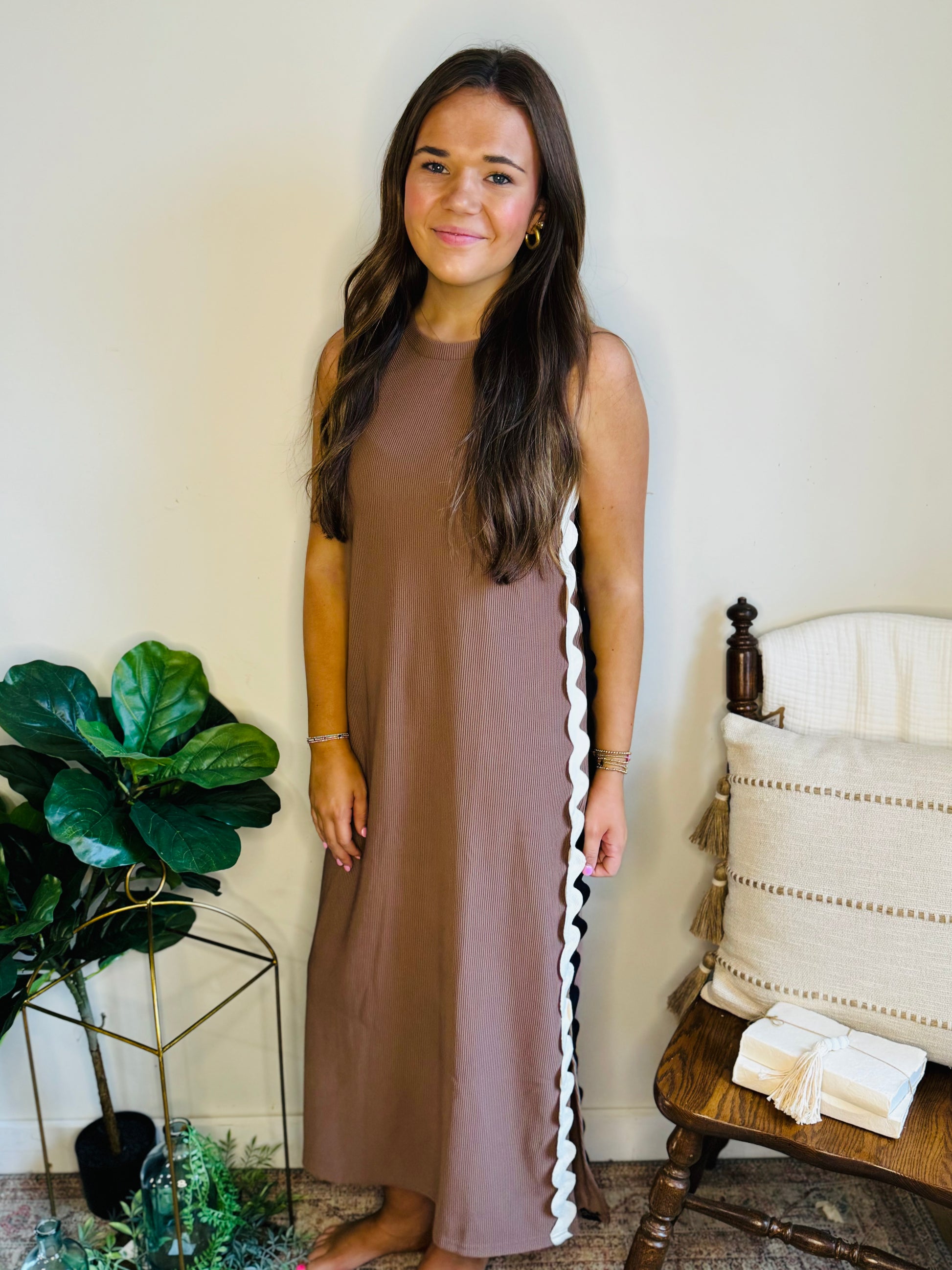 Have some fun with your wardrobe and add this flirty maxi to your closet! A strait silhouette and whimsical black and white detail is elongating and flattering. The soft ribbed material is stretchy and comfy. You’ll feel like you’re in your pajamas while making a statement wherever you go.