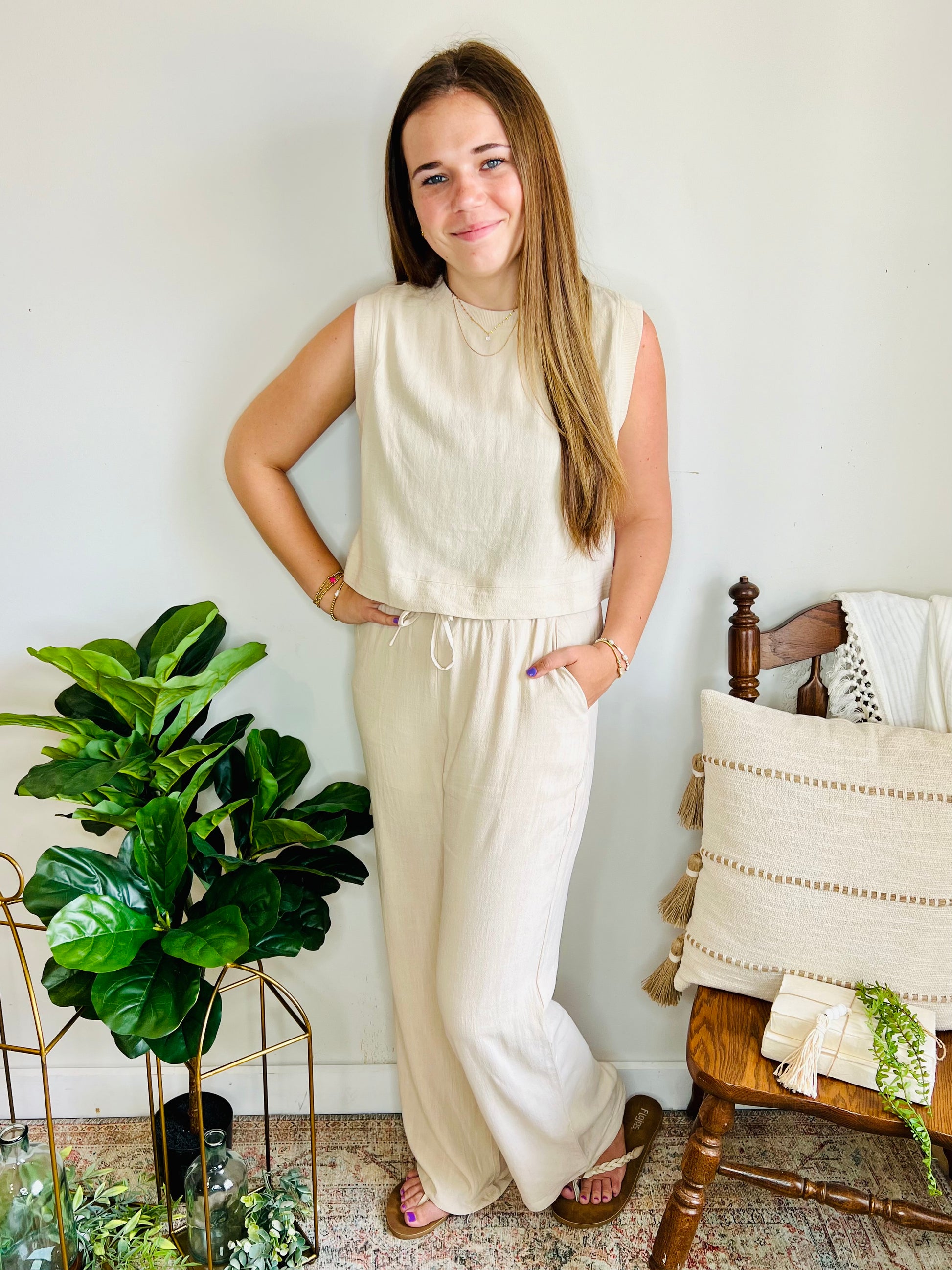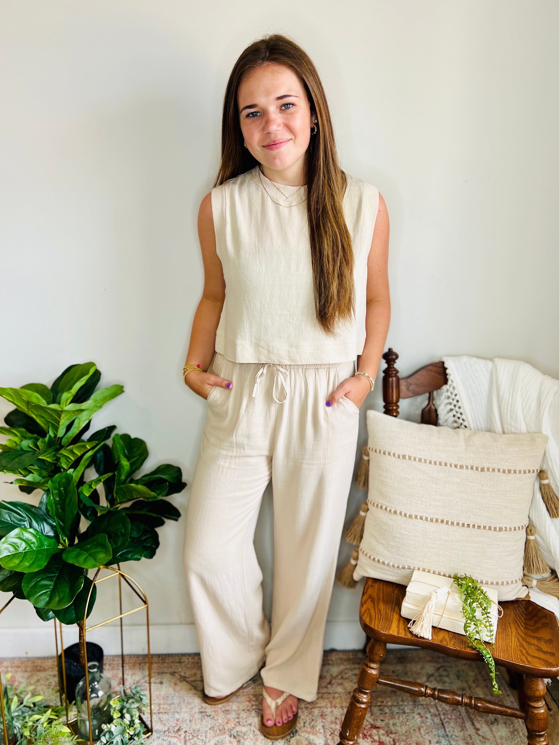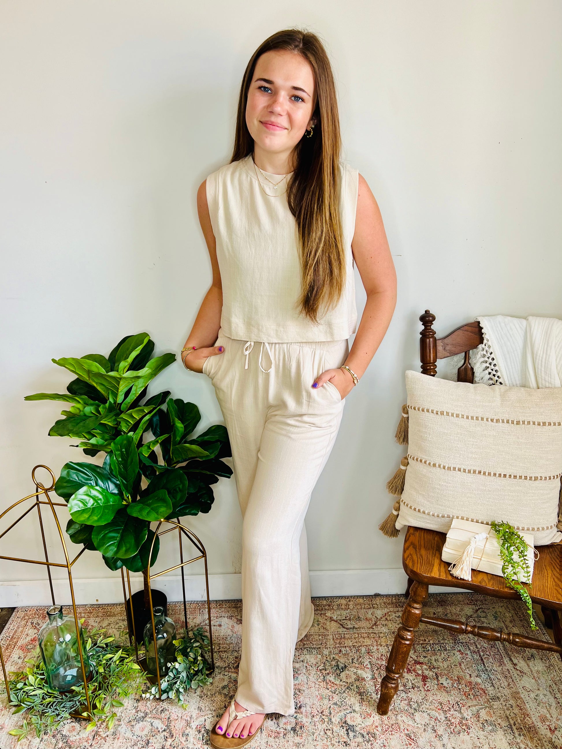 You won’t find a more classy summer set! The linen material elevates the look and is perfect for the season. Pair with sandals for a casual daytime look and brunch with the girls, or dress it up for an evening on the town and dinner at the beach!