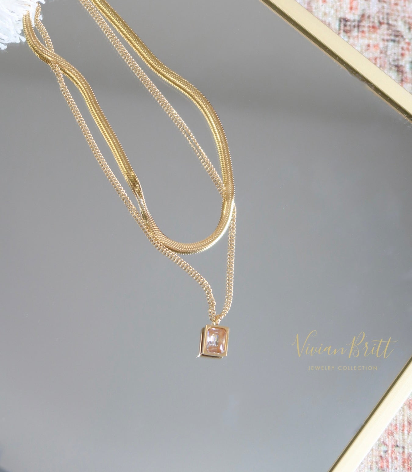 Whether you’re heading to brunch with the girls, or on a date night out, our Joyce Double Layer Necklace with its beautiful cased emerald cut CZ drop pendant has the versatility to match your look. This necklace set is a perfect gift for anyone who loves versatile and stylish accessories!