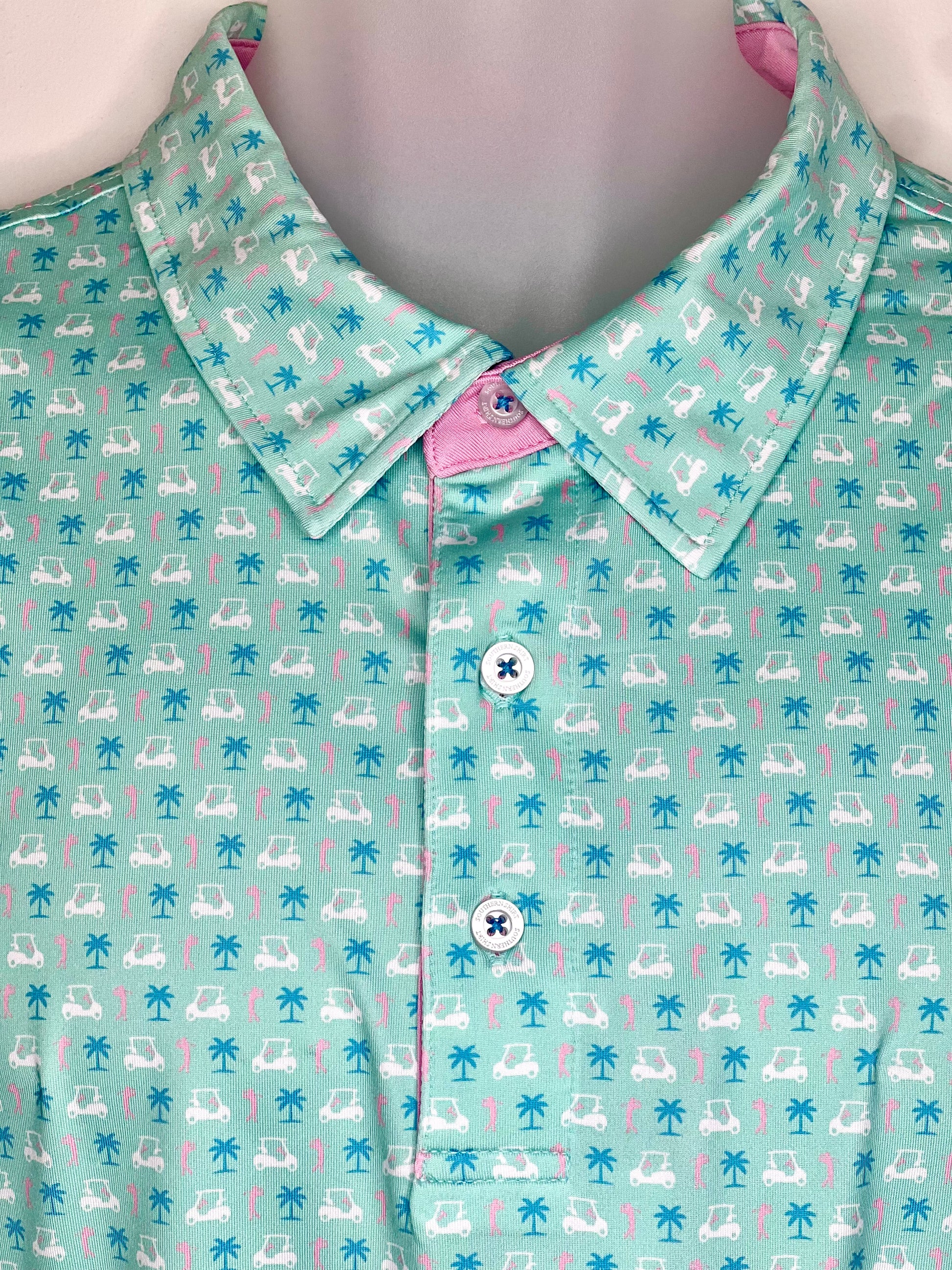 These unique printed performance polos are crafted from moisture-wicking stretch knit to keep you cool on the course.