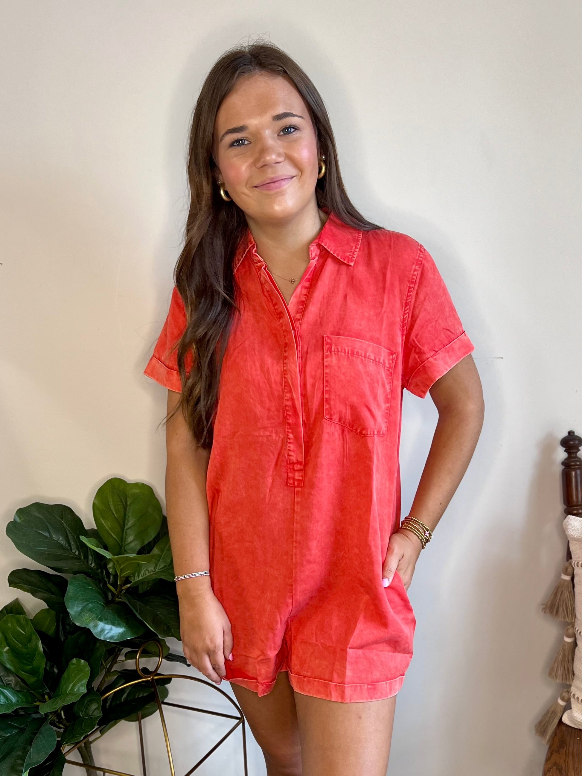 A fun pop of color is a great way to make a statement during any season, but we especially love this for football season! Whether tailgating or spectating from home or on the field, this red romper would be the perfect way to show your school spirit without sacrificing comfort.