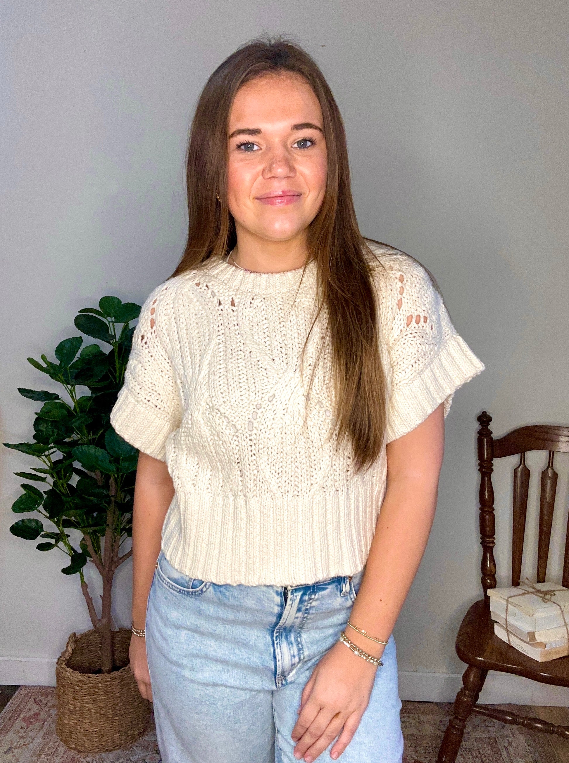 This beautifully crocheted short sleeve sweater is a classic piece that you’ll love having in your wardrobe. The style and color make it so elegant and versatile.